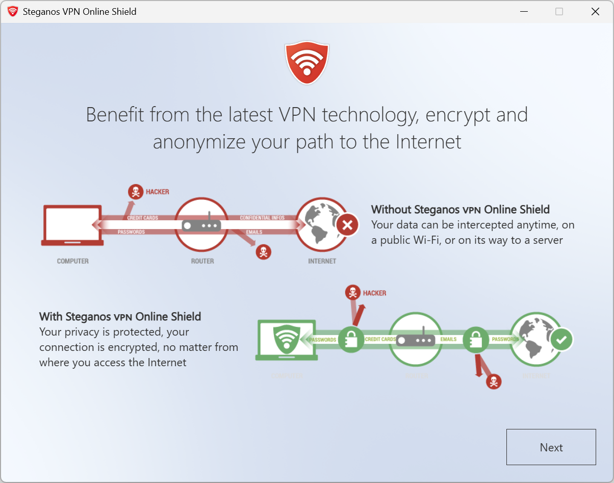 Whether bank data or passwords - data theft is not okay! Steganos VPN Online Shield protects you while surfing the Internet.